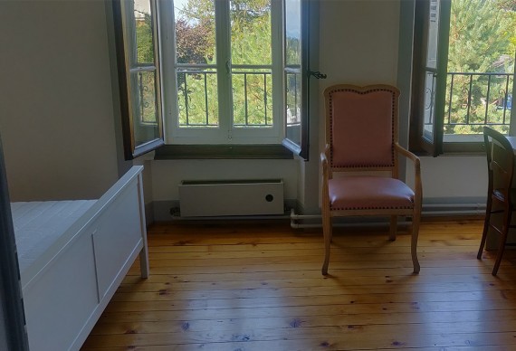 Chambre située au premier étage d’une villa à Renens. Accès à l’université ou à l'EPFL en 15-20 minutes à pied. Tranquille. Vue sur le lac.