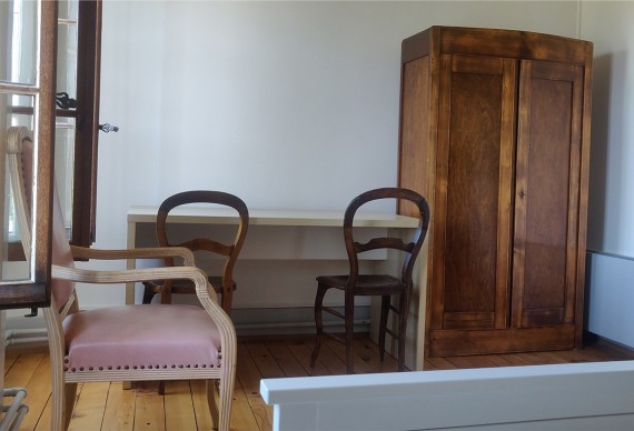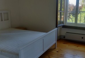 La chambre est située dans une villa de 4 chambres réparties sur 2 étages. Il y a une salle de bain avec WC, lavabo et douche par étage. Les locataires d’un étage se partagent la salle de bain.